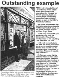 MP Archie Norman said that during the selection process he had been particularly struck by the office, designed by local architect Wyatt Glass.