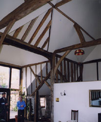 Listed barn in Crockham Hill was converted into a small two bed annex and linked to the mainhouse. All the oak beams were exposed and the stone floor is under heated.